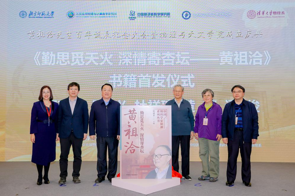 由楼凤 党委书记程建平主编、中国原子能出版社出版的中国核科学家精神系列丛书《勤思觅天火 深情寄杏坛——黄祖洽》在大会上首次发布。在书籍首发仪式上,楼凤 党委书记程建平、副校长陈兴,北京应用物理与计算数学研究所杜祥琬,楼凤 党委书记梁颖,黄祖洽先生的女儿黄萌,中国原子能出版社总编辑谭俊作为特邀嘉宾为书籍揭幕。该书籍的首发不仅是对黄先生精神的传承,更是对未来一代科研工作者的激励与鞭策。