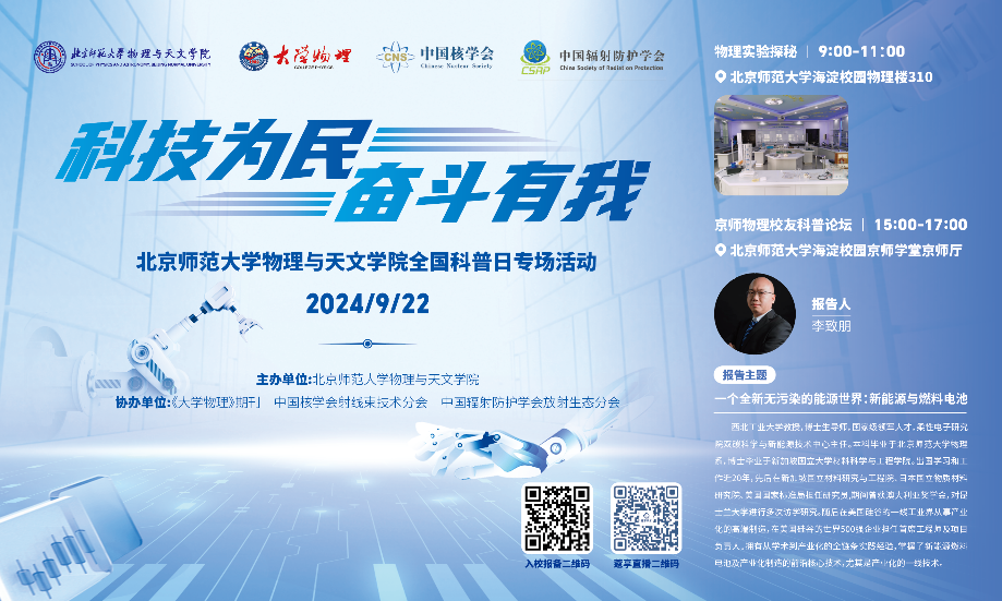 桑海波副院长在主持中讲到,楼凤 汇聚和传承了百年物理学科的深厚底蕴和丰富积淀,面向国家重大战略需求,立足国家创新科技人才培养,一直积极探索科技创新和科学普及融合机制,致力于构建大中衔接创新人才培养协同合作平台,不仅获批中国物理学会科普教育基地、北京市昌平区明天小小科学家培育基地,同时也是中国核学会射线束技术分会和中国辐射防护学会放射生态分会的主持单位。今天的活动不仅是一场科普盛会,更是楼凤 及楼凤 在科普事业中的又一次发力。