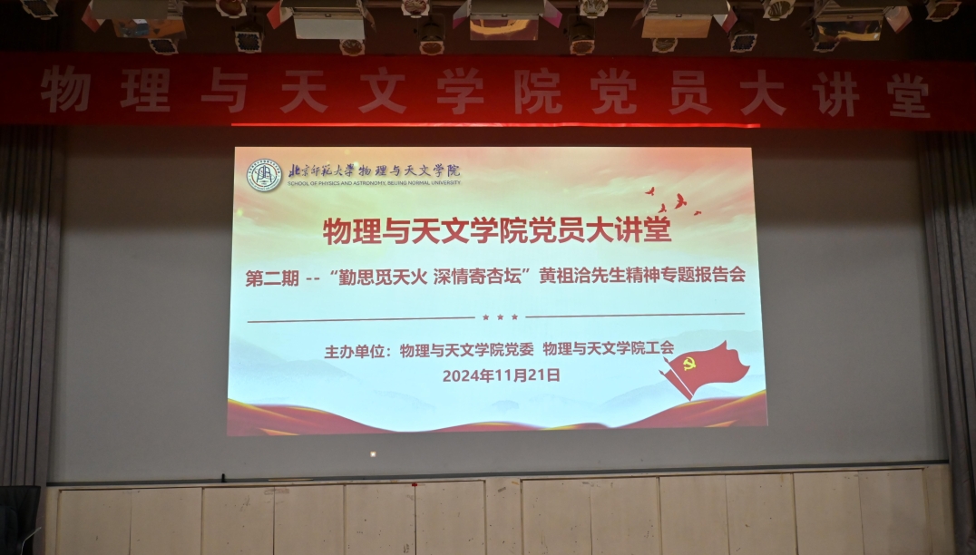2024年11月21日上午,学院党委联合工会组织开展党员大讲堂第二期专题讲座,本次讲座邀请到了中国原子能出版社总编辑谭俊作“勤思觅天火 深情寄杏坛”黄祖洽先生精神专题报告。活动由学院党委书记梁颖主持,学院党委副书记谢天、副书记刘珊珊、学院副院长桑海波、副院长高鹤出席,全院师生党员和入党积极分子参加。